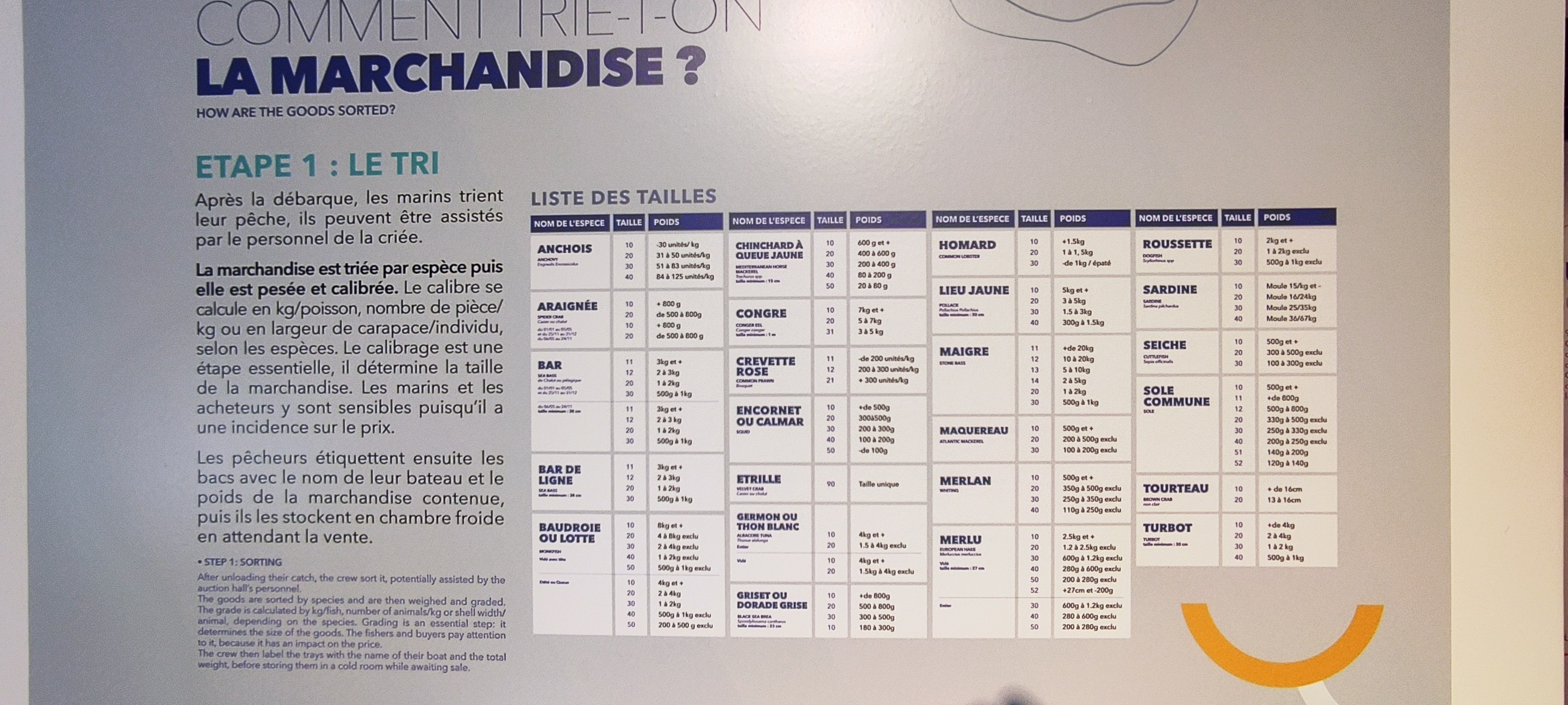Excellente visite de découverte du milieu marin ! Après un très joli film d’introduction sur la vie des marins, nous avons eu le droit à une visite guidée de la criée. La guide était très gentille, professionnelle mais surtout passionnée ! Un vrai régal de l’entendre nous raconter le quotidien des marins pêcheurs. Puis, nous sommes allés dans le musée qui est vraiment sympathique et ludique. Nous avons adoré le simulateur d’enchères ! Merci à la guide pour son accueil ! Nous vous conseillons cette visite sans hésiter !