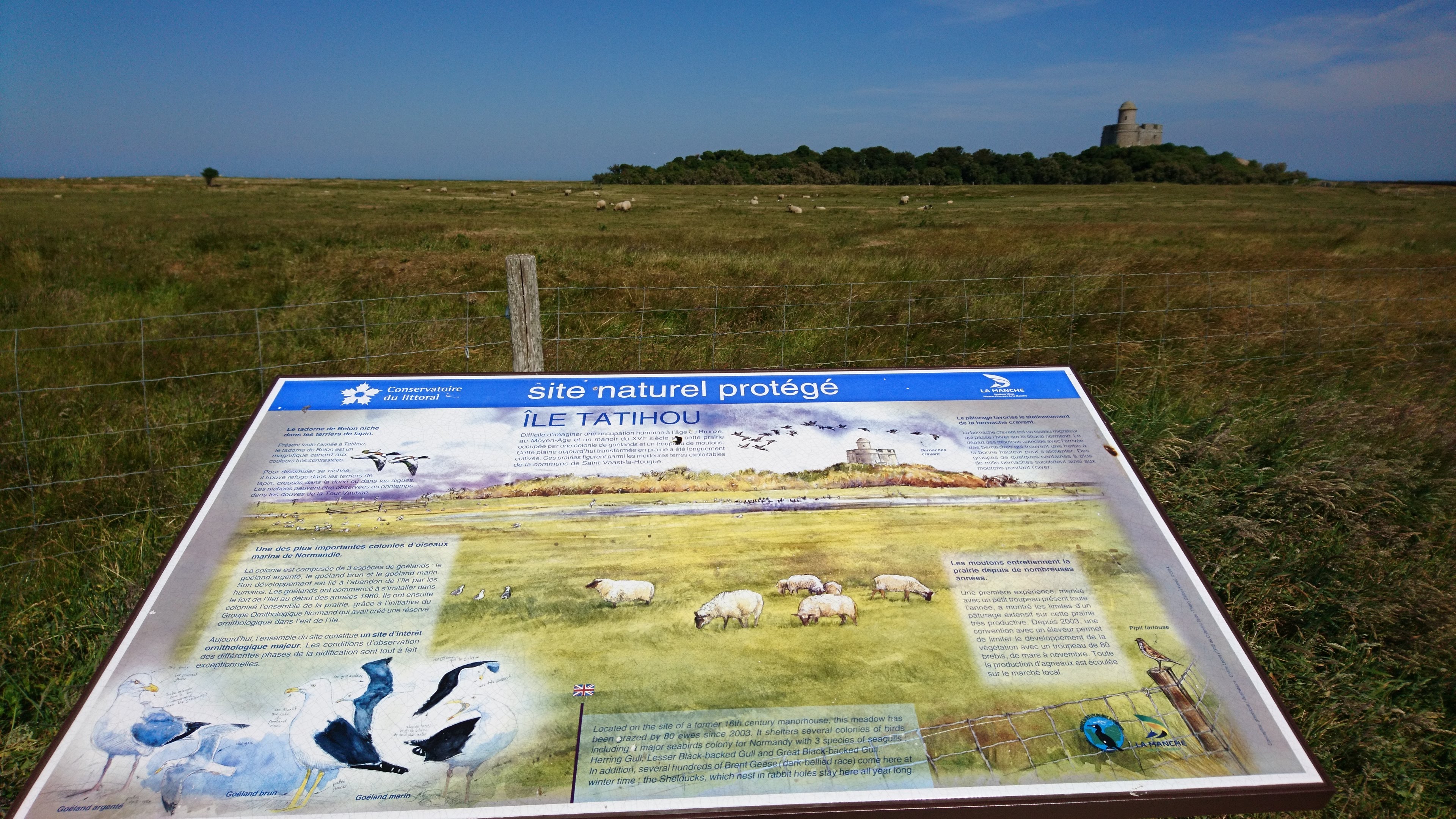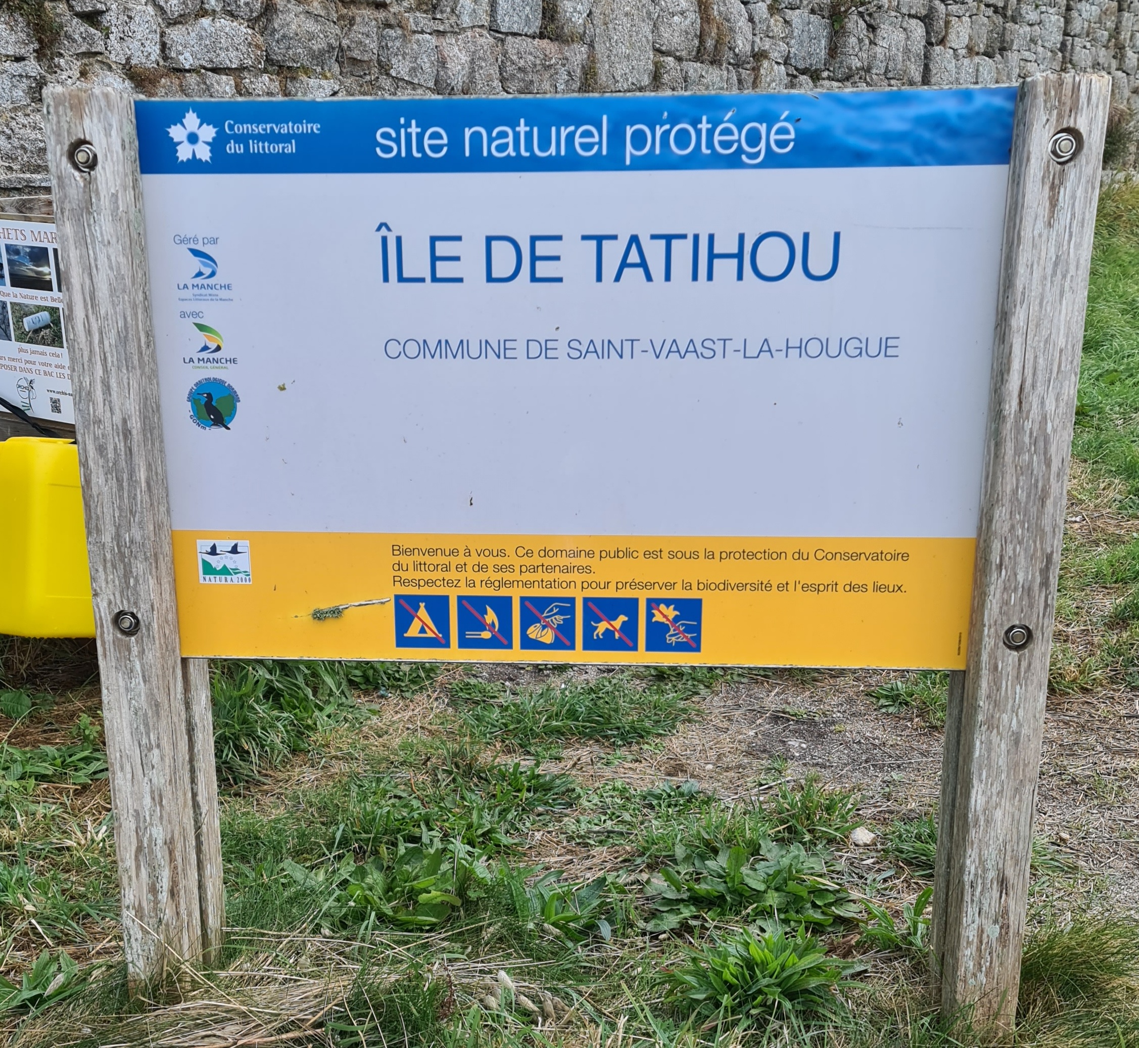 Distante de 2 km de la côte, on s'y rend en bateau amphibie. J'y suis allée à marée haute en version bateau et j'en suis revenue en bateau roulant à travers les parcs à huîtres de Saint Vaast. Sur place, on peut visiter une ancienne leproserie enclos de murs où jadis, les équipages et cargaisons suspectes de transmettre une épidémie étaient mis en quarantaine. Aujourd'hui l'enceinte renferme un beau jardin botanique et un musée. Plus loin on peut visiter une tour due à Vauban.