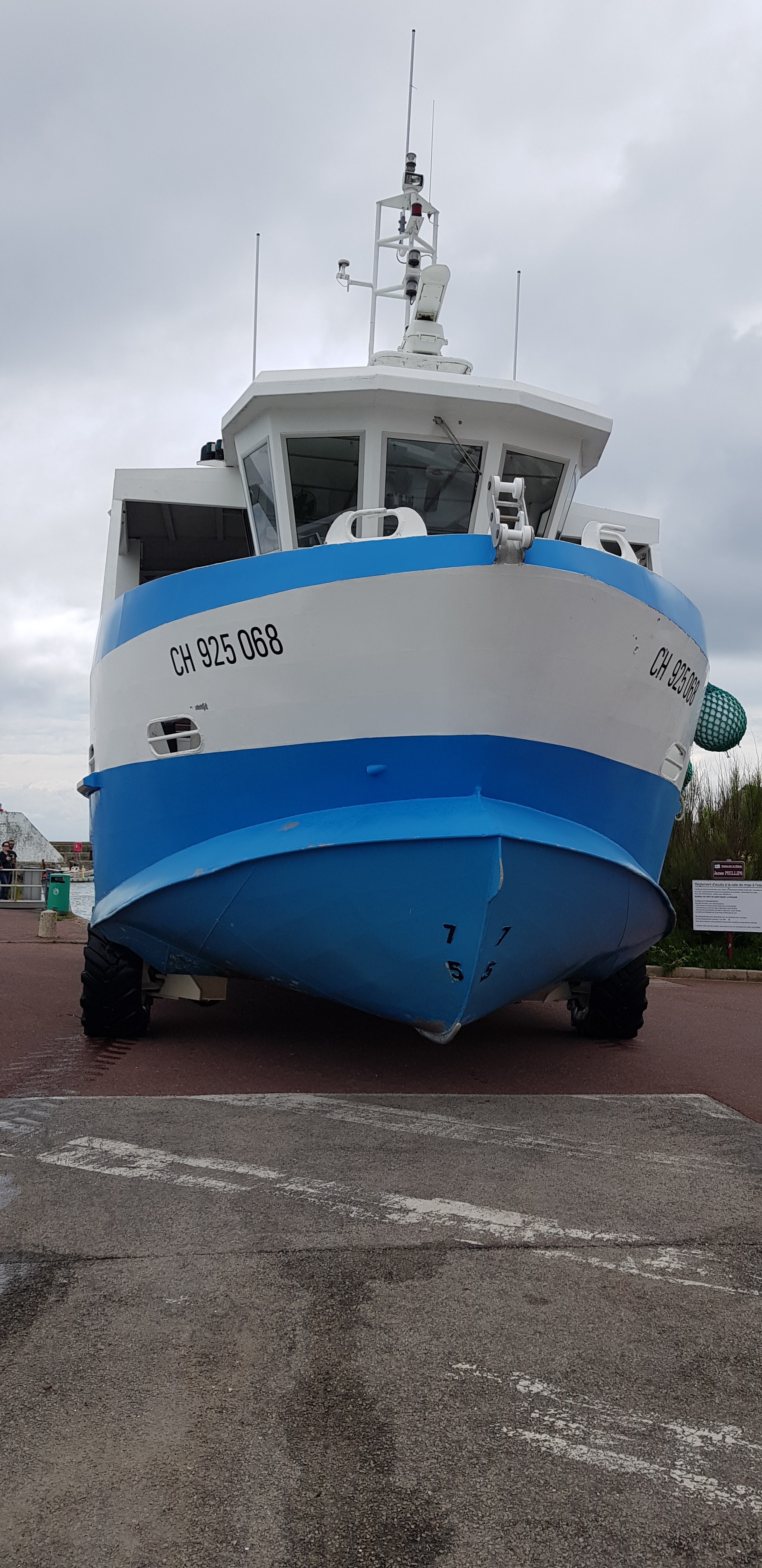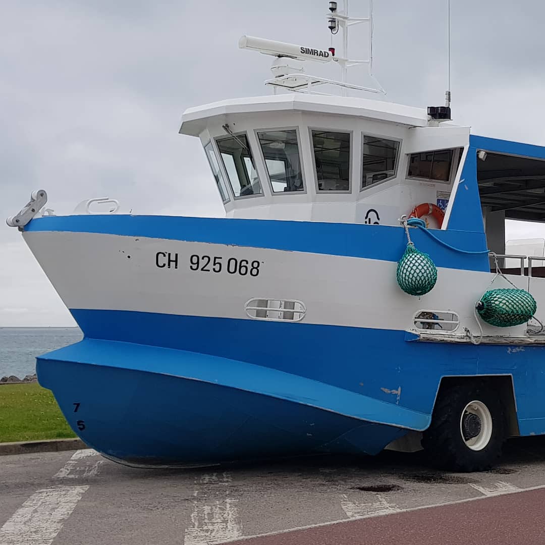 Etonnant ce bateau qui peut circuler dans l'eau comme sur la terre ferme Une curiosité unique. Saint Vaast