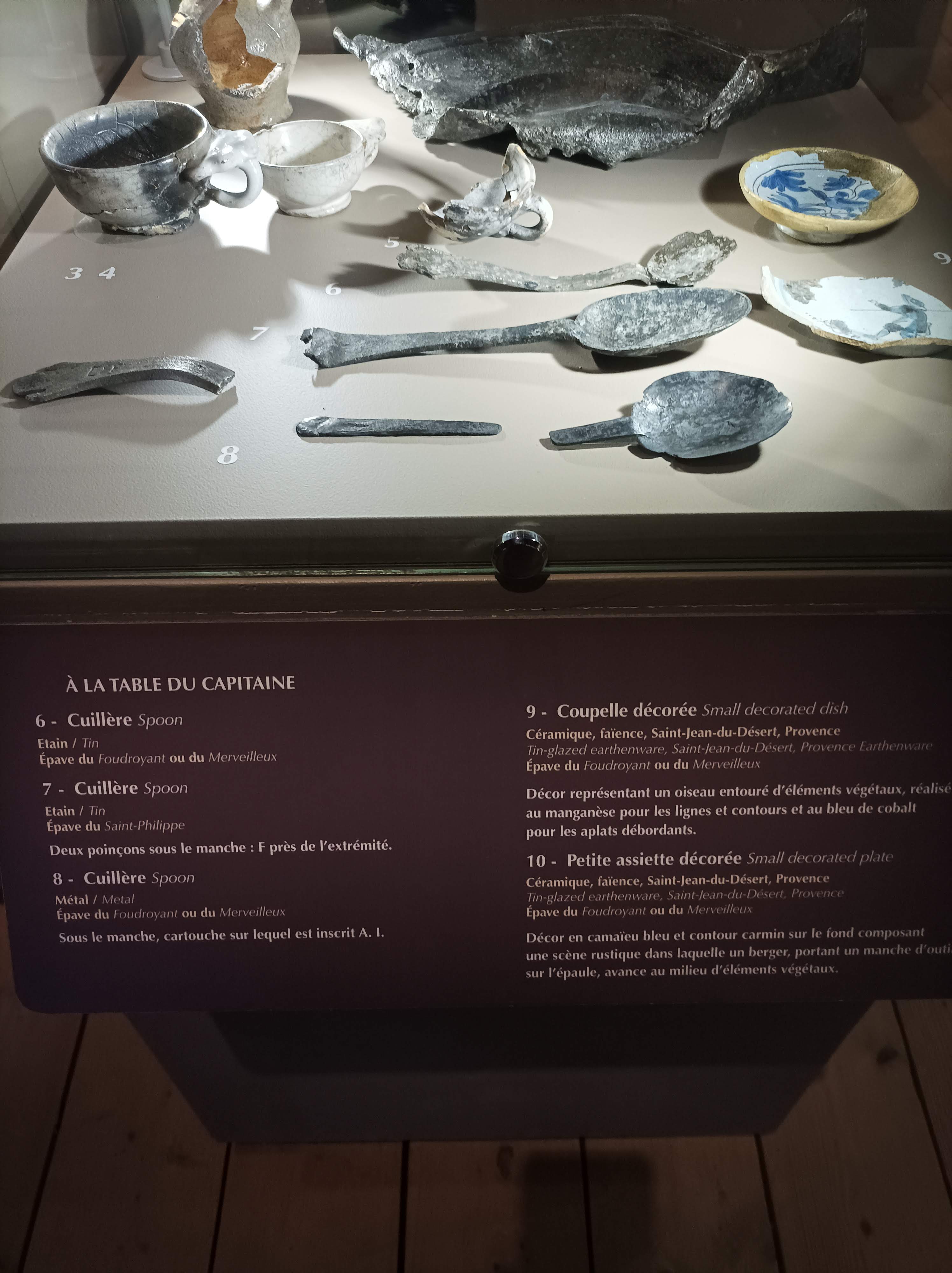 Beaucoup d'objets en provenance des 12 épaves des navires français brûlés par les anglais lors de la bataille de Barfleur.